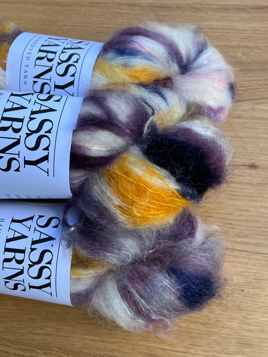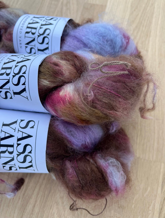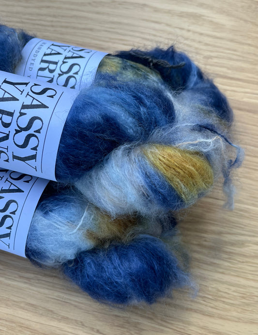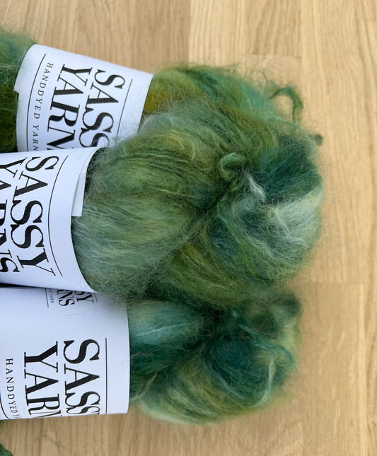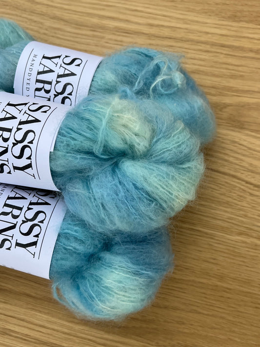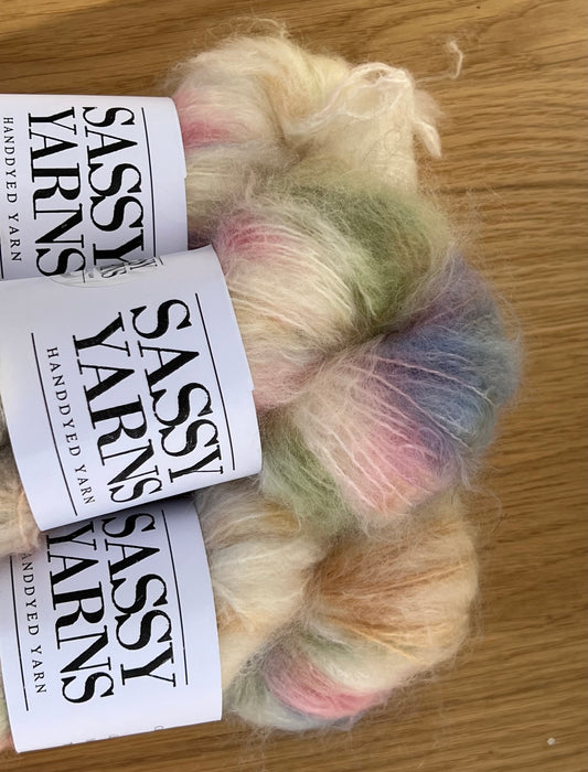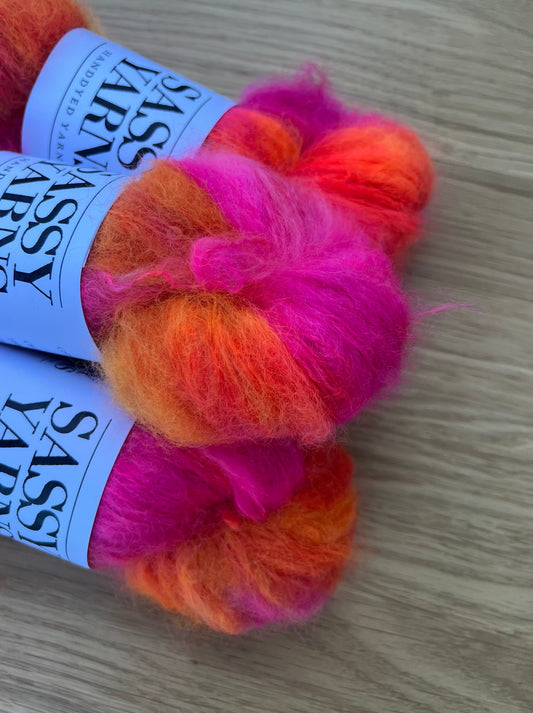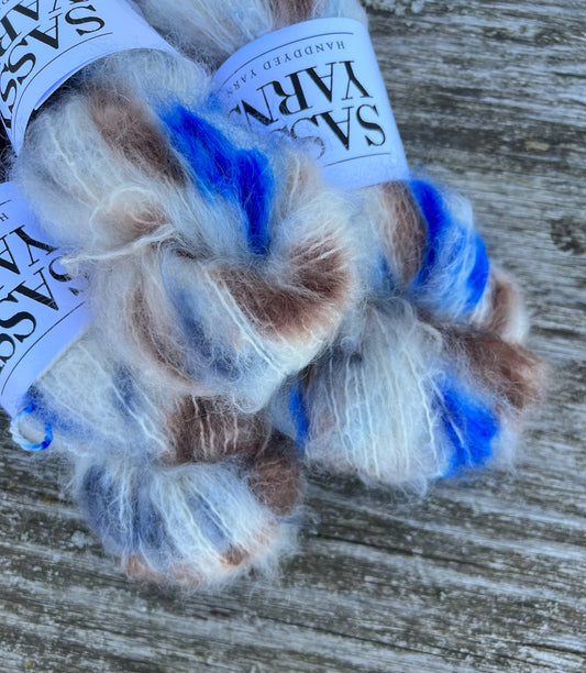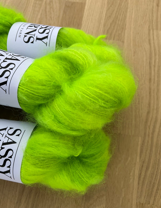 78 % kid mohair, 13 % merino og 9 % nylon.