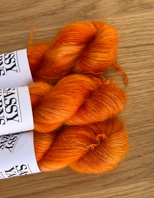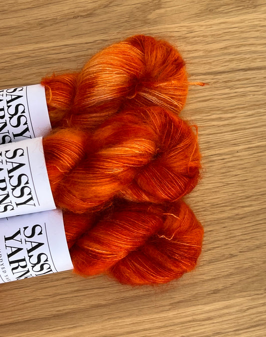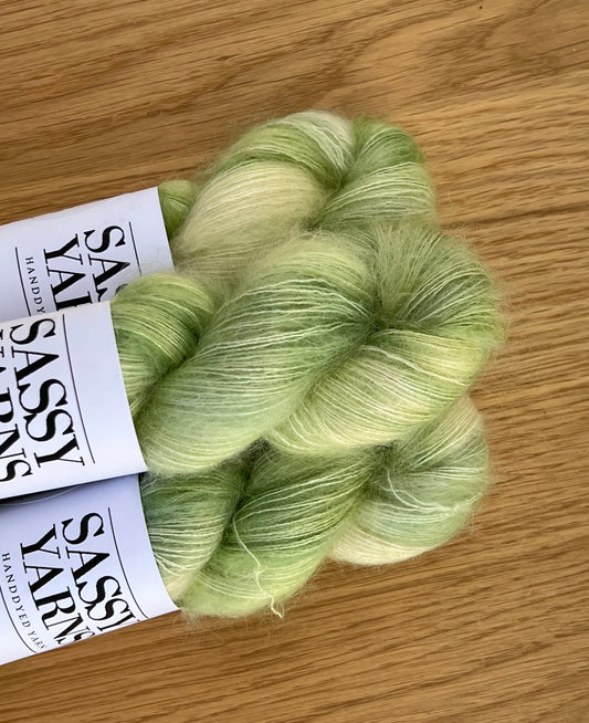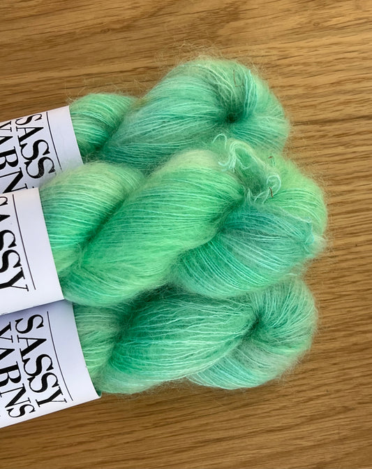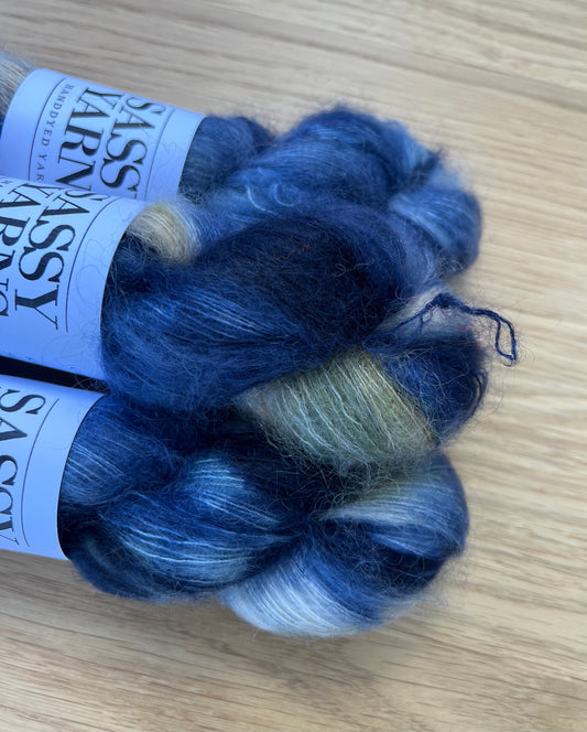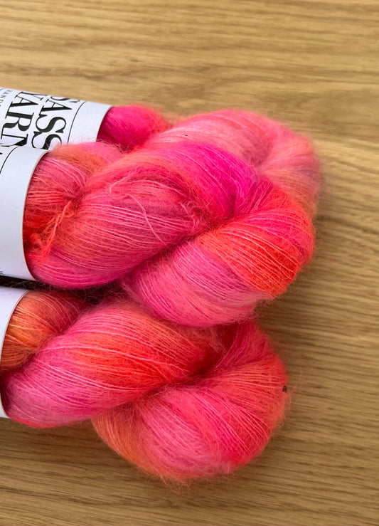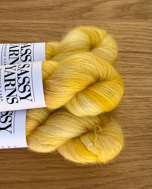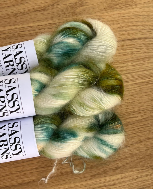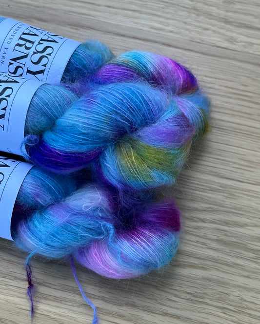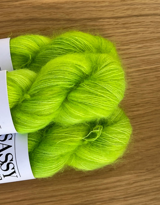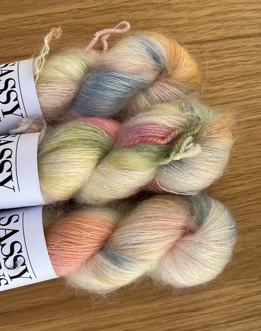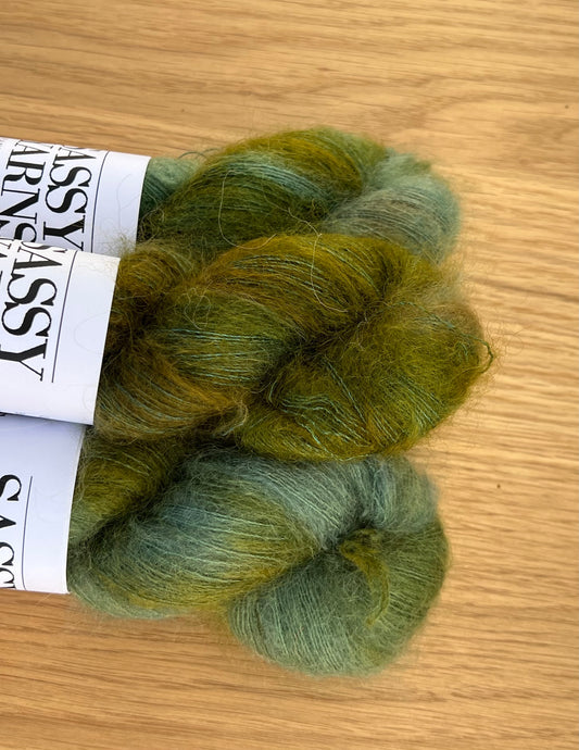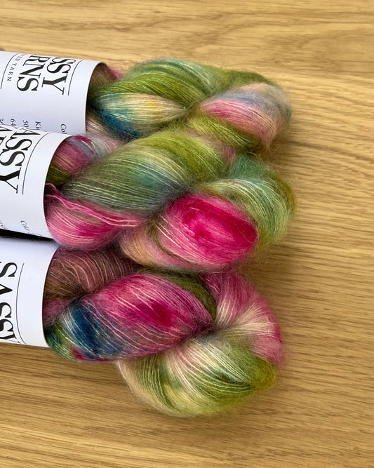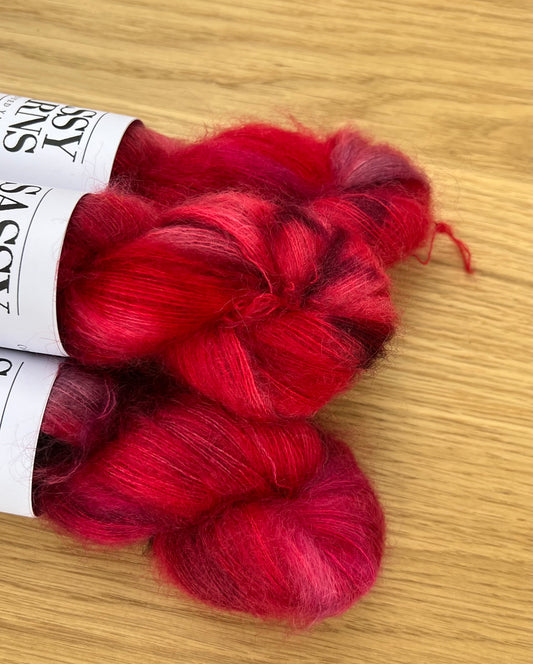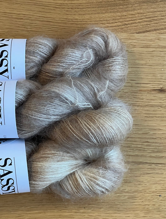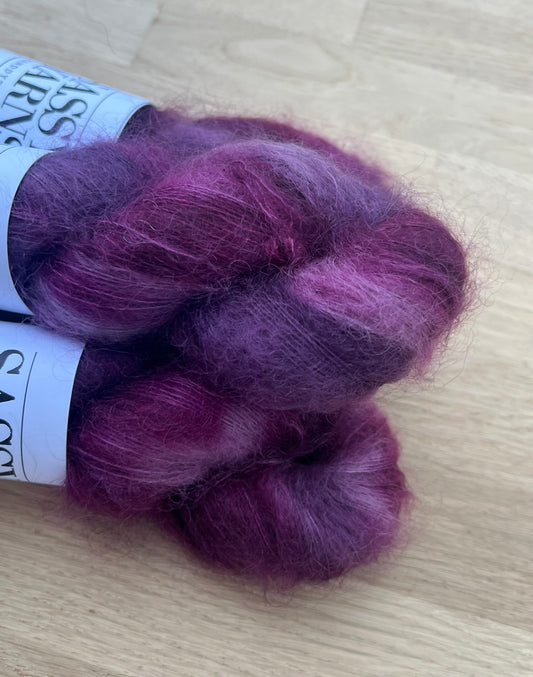 Dieses wunderbare Garn kombiniert die erstaunliche Weichheit von 72 % Kid Mohair mit dem leichten, glänzenden Seidenfaden, wodurch ein Garn entsteht, das sowohl luftig als auch luxuriös ist. Die feinen, lockigen Fasern des Kid Mohair verleihen dem Garn unglaubliche Leichtigkeit und Volumen, während die Seide für einen schönen, dezenten Glanz und zusätzliche Festigkeit sorgt. Das Garn fühlt sich angenehm auf der Haut an und eignet sich ideal für Projekte, die eine Extraportion Eleganz und Komfort erfordern.