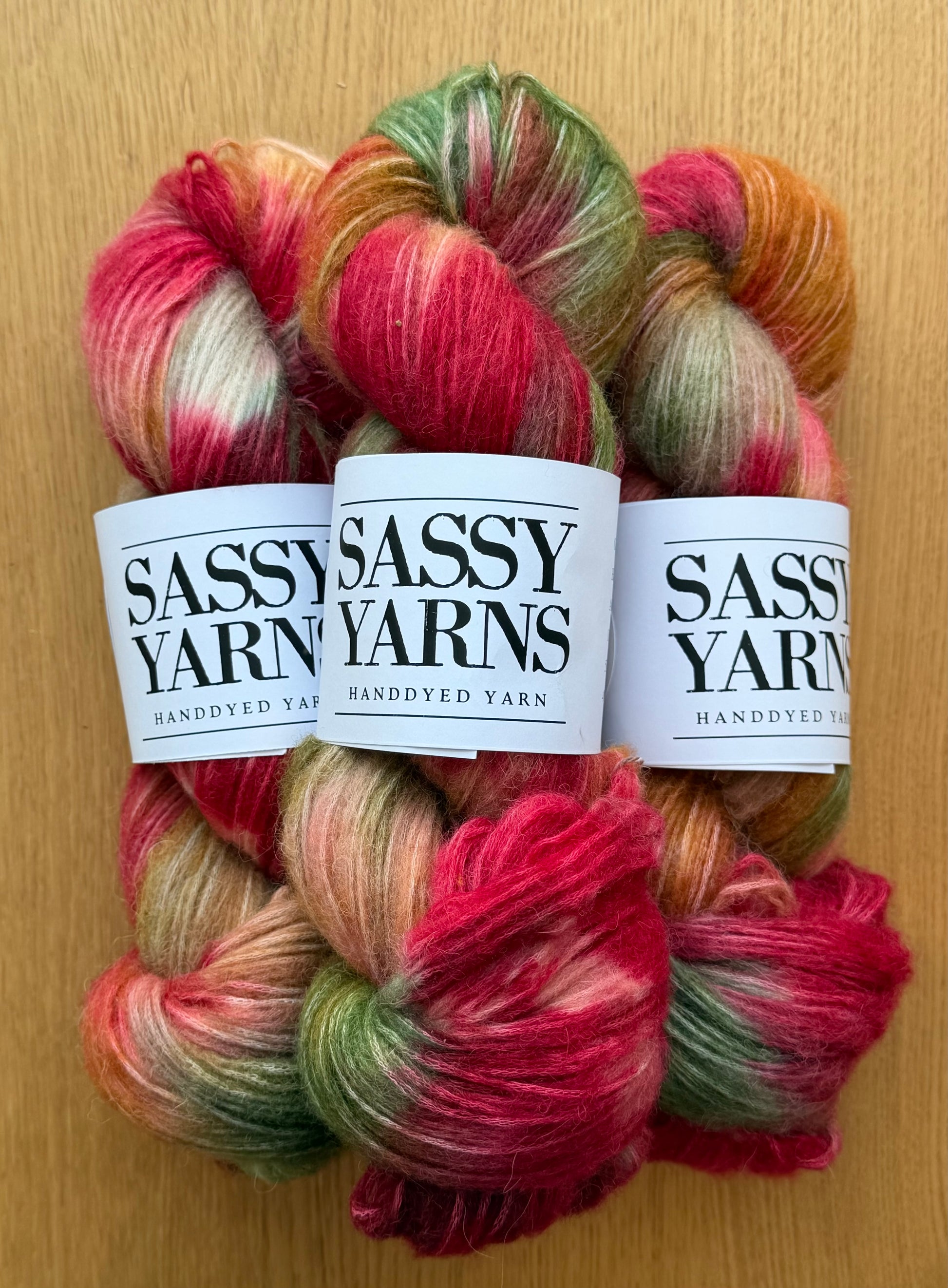 Håndfarvet garn er farvet i små partier og billedet er repræsentative for farvning. Dog er det ikke nødvendigvis det fed du modtager. Ved projekter hvor flere fed er involveret, anbefales det at skifte mellem forskellige fed for at undgå at farver ”grupperer sig”.