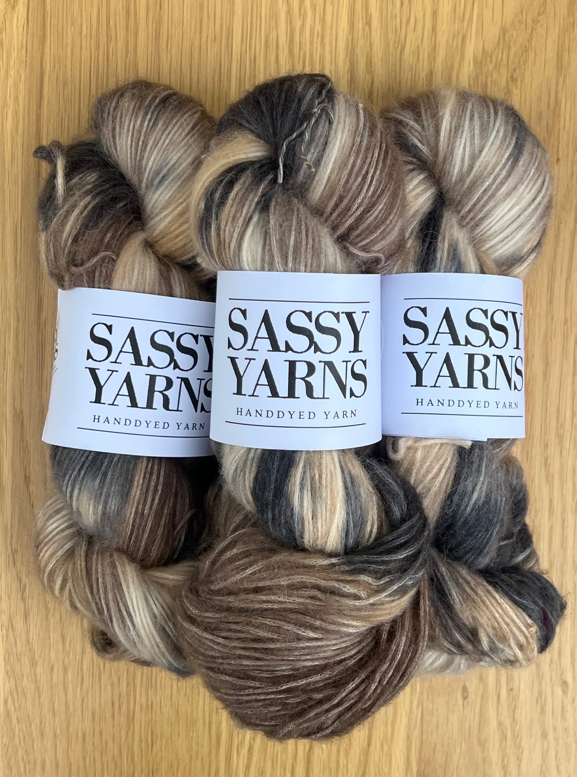 Håndfarvet garn er farvet i små partier og billedet er repræsentative for farvning. Dog er det ikke nødvendigvis det fed du modtager. Ved projekter hvor flere fed er involveret, anbefales det at skifte mellem forskellige fed for at undgå at farver ”grupperer sig”.