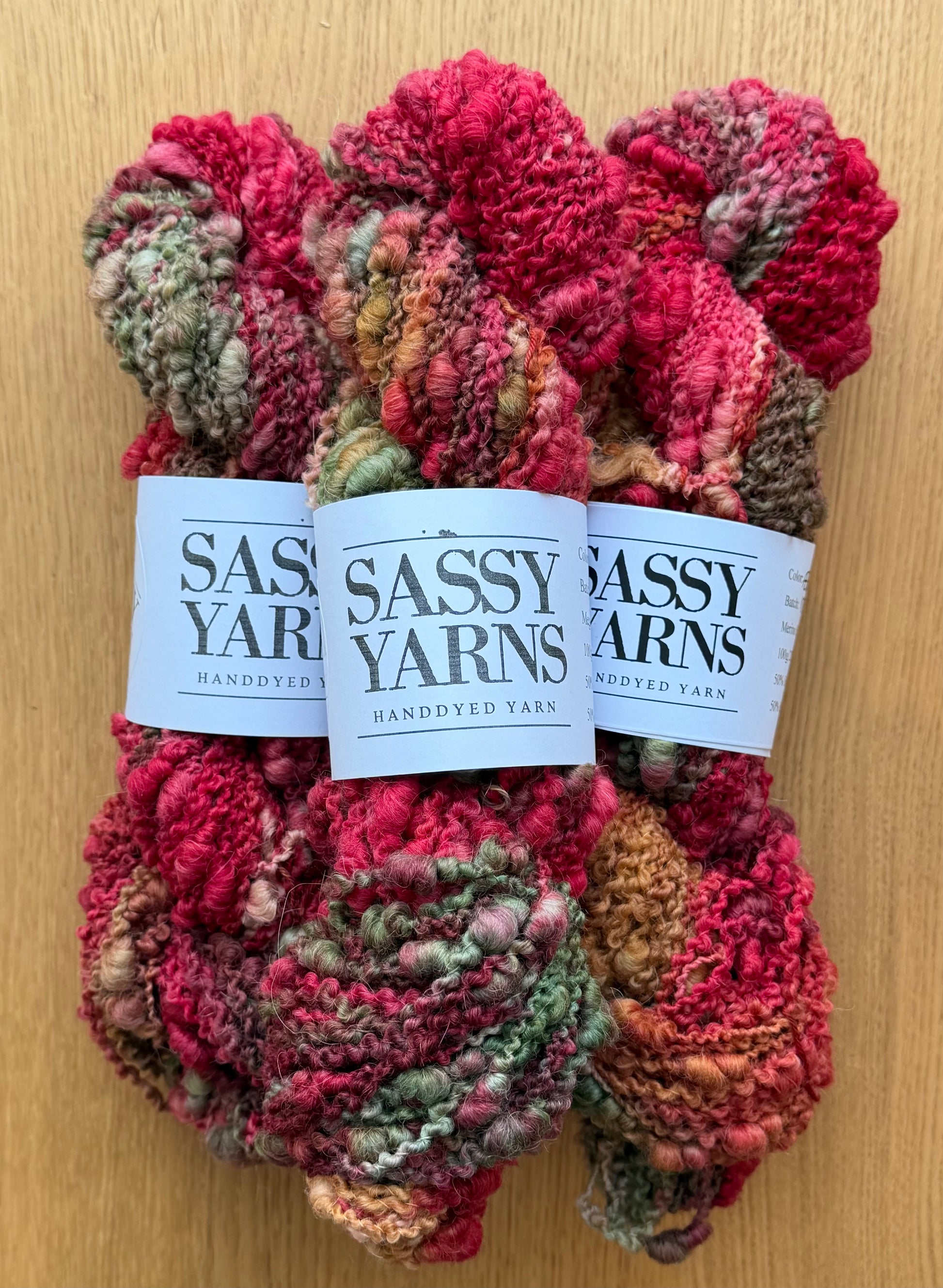 Håndfarvet garn er farvet i små partier og billedet er repræsentative for farvning. Dog er det ikke nødvendigvis det fed du modtager. Ved projekter hvor flere fed er involveret, anbefales det at skifte mellem forskellige fed for at undgå at farver ”grupperer sig”.