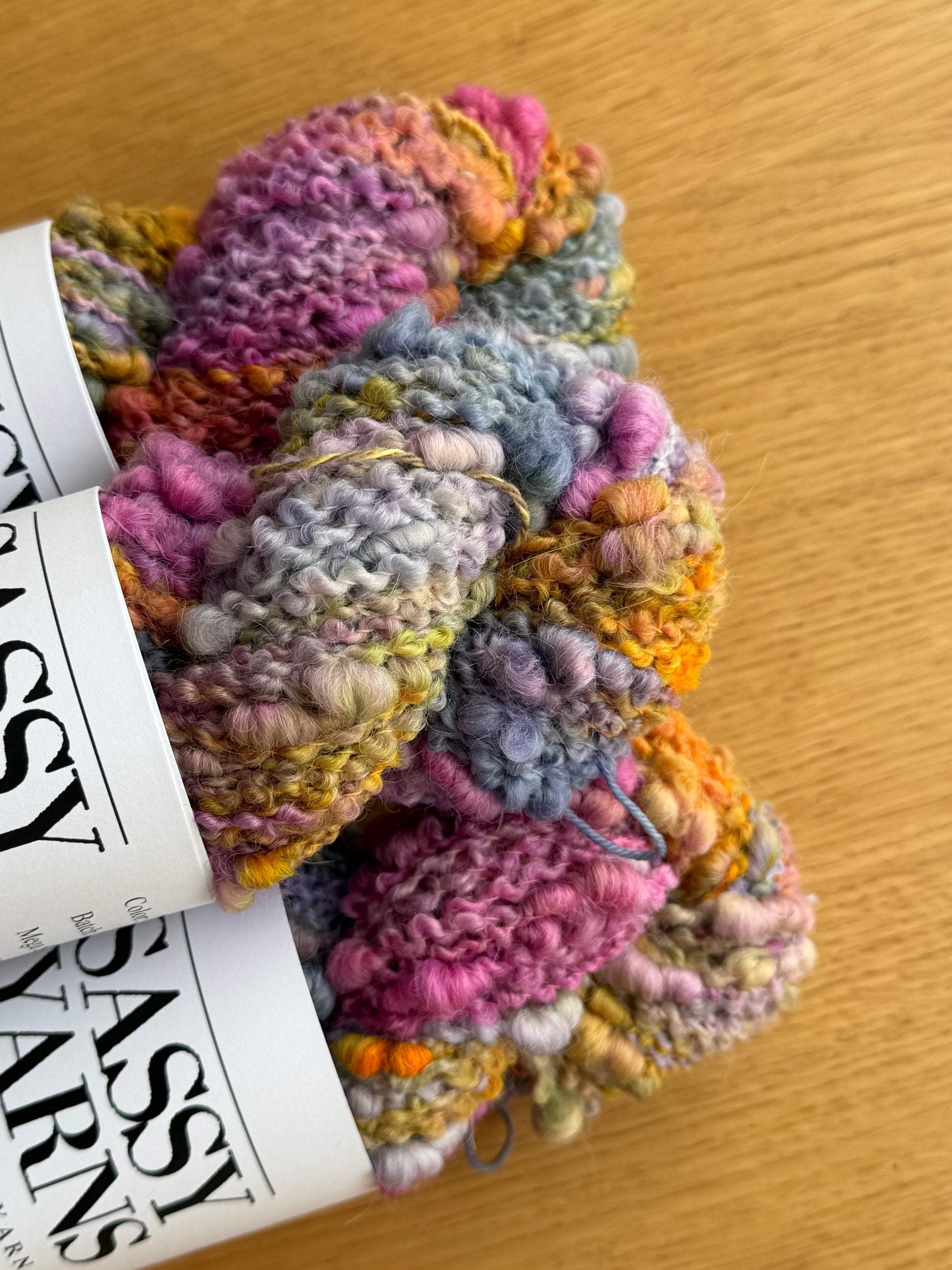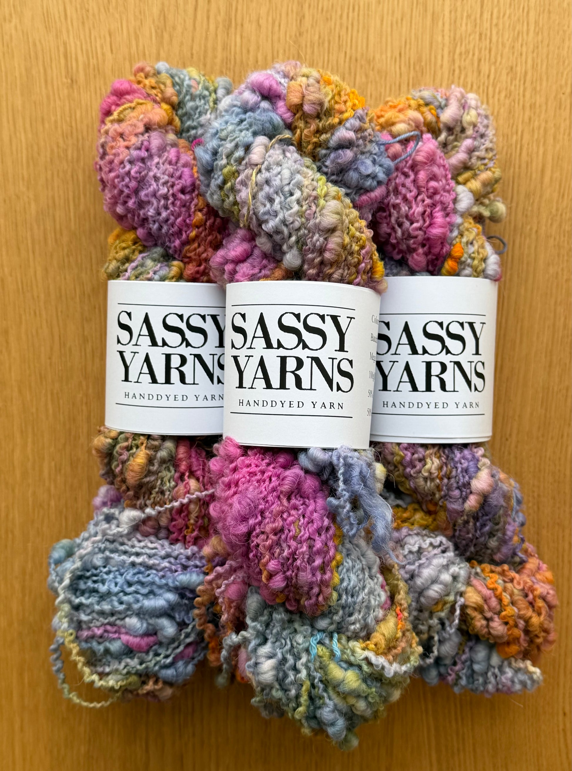 Håndfarvet garn er farvet i små partier og billedet er repræsentative for farvning. Dog er det ikke nødvendigvis det fed du modtager. Ved projekter hvor flere fed er involveret, anbefales det at skifte mellem forskellige fed for at undgå at farver ”grupperer sig”.