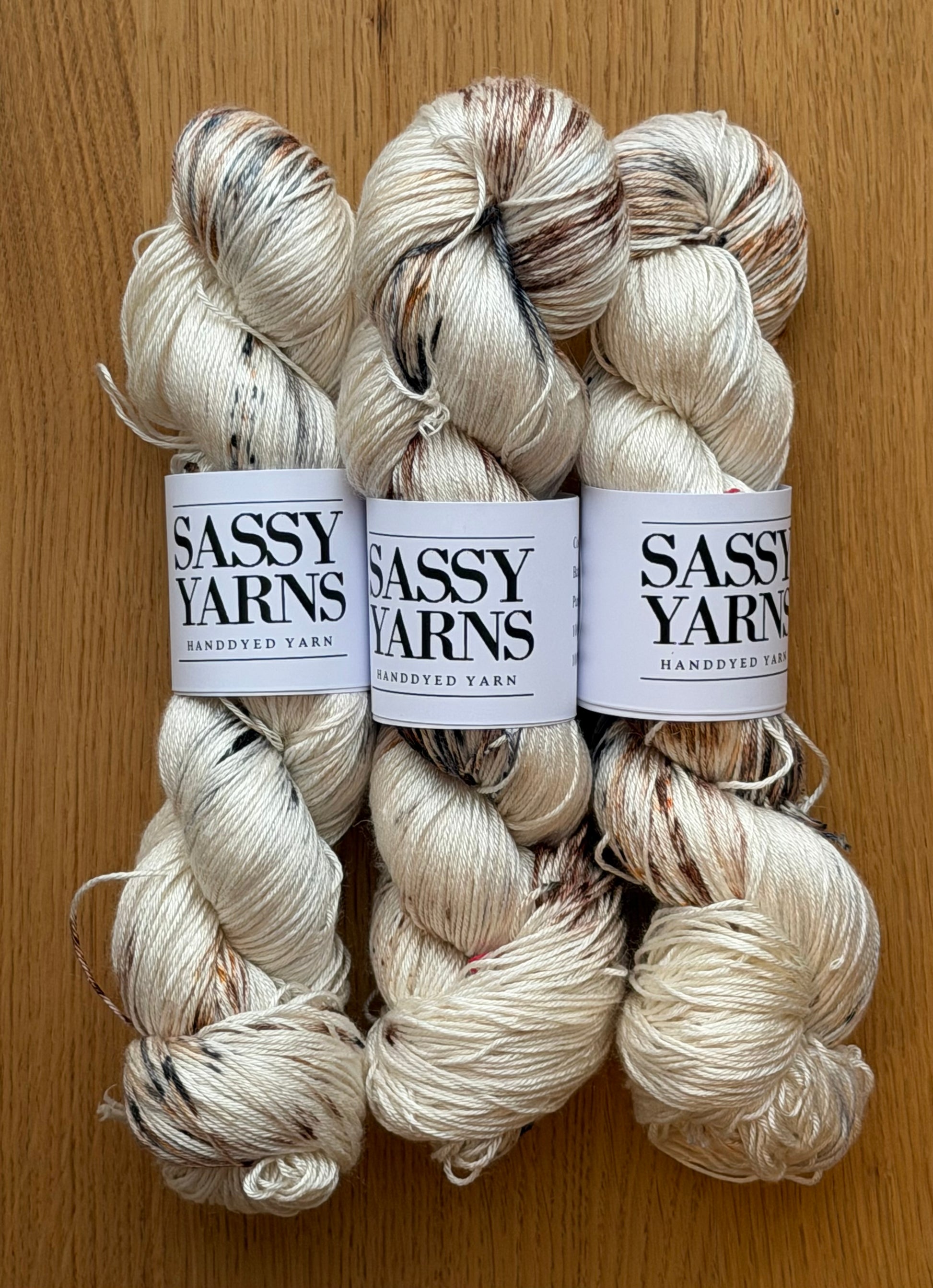 Håndfarvet garn er farvet i små partier og billedet er repræsentative for farvning. Dog er det ikke nødvendigvis det fed du modtager. Ved projekter hvor flere fed er involveret, anbefales det at skifte mellem forskellige fed for at undgå at farver ”grupperer sig”.