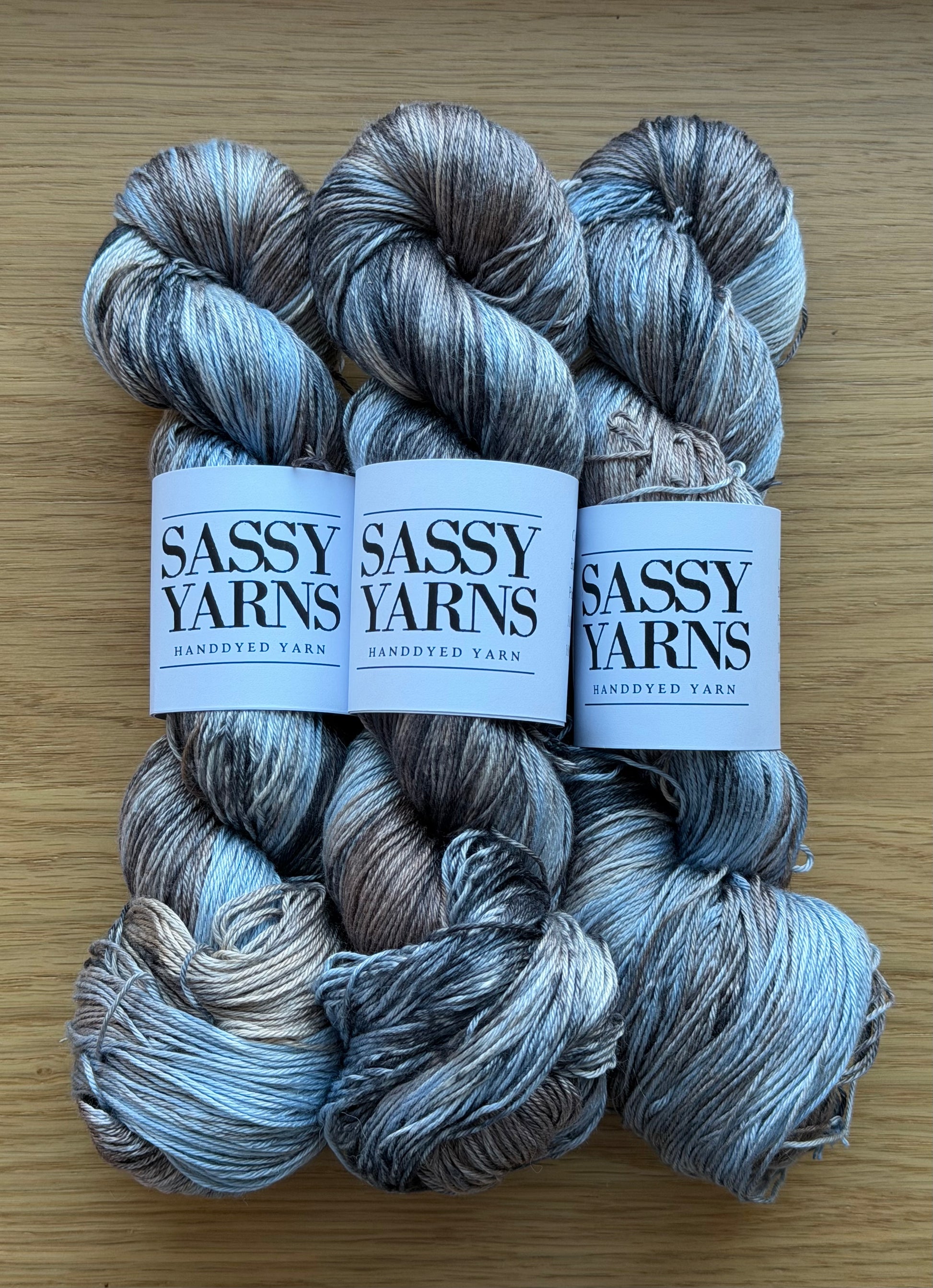 Håndfarvet garn er farvet i små partier og billedet er repræsentative for farvning. Dog er det ikke nødvendigvis det fed du modtager. Ved projekter hvor flere fed er involveret, anbefales det at skifte mellem forskellige fed for at undgå at farver ”grupperer sig”.