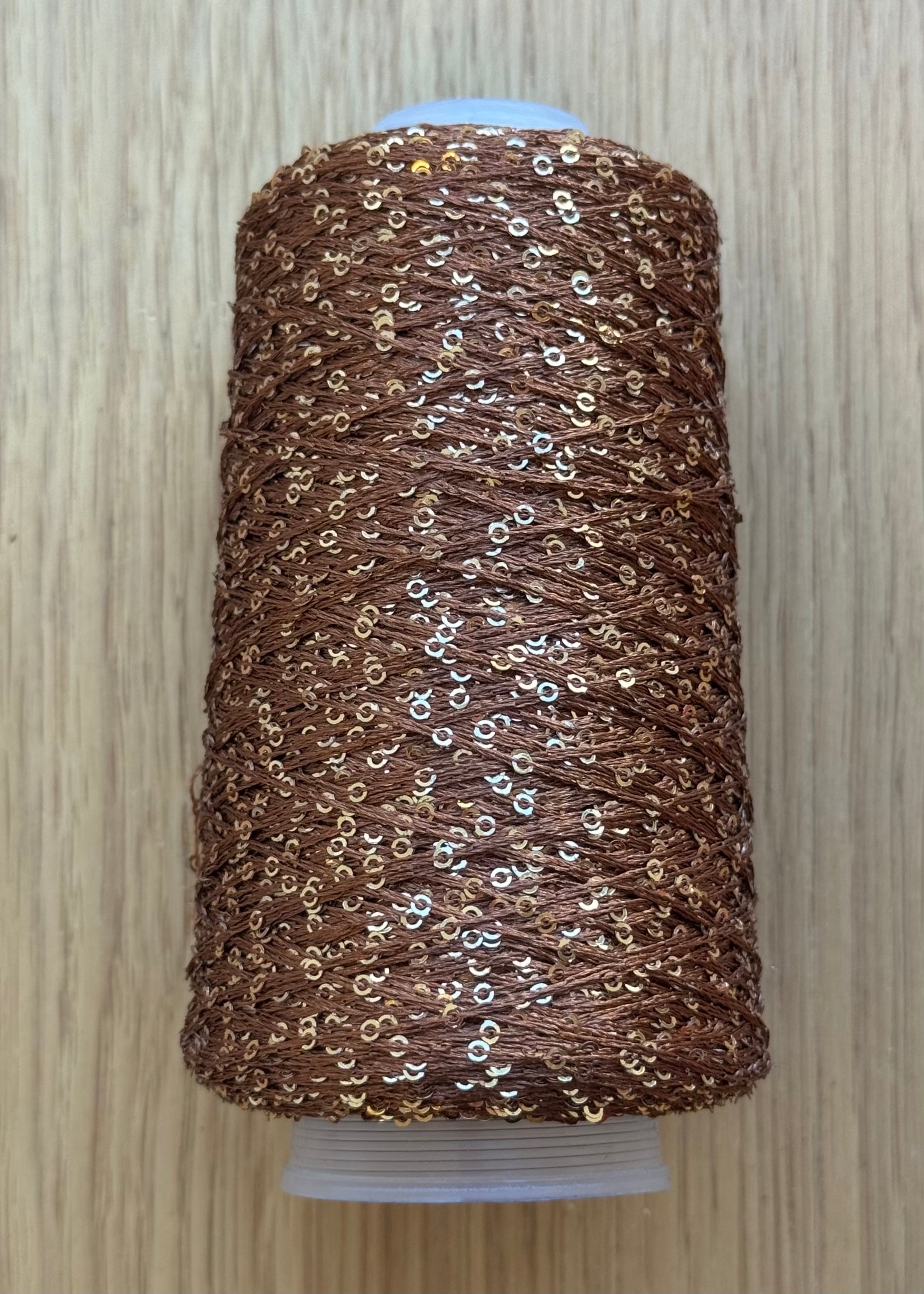 Små pailletter på metallisk tråd.