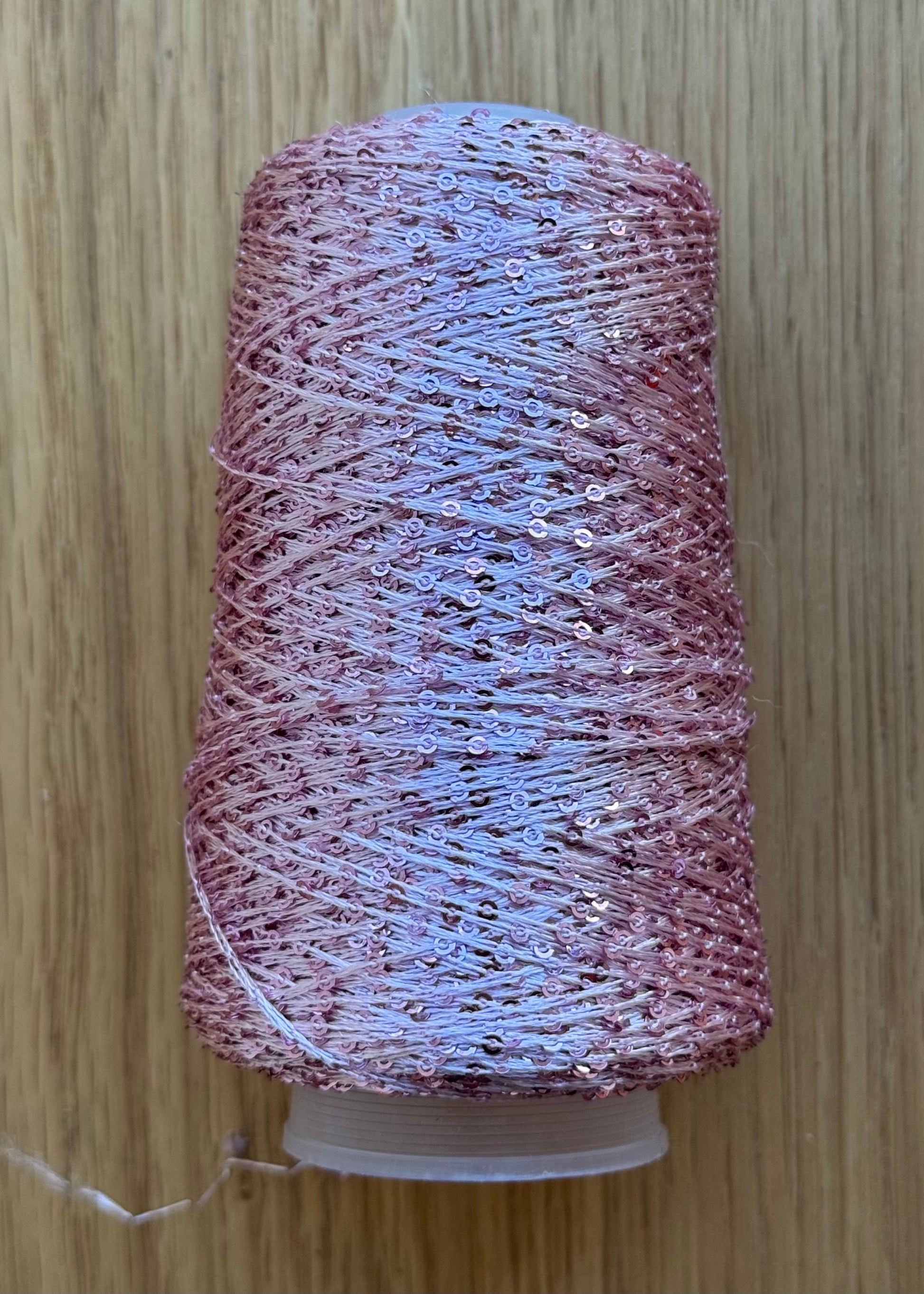 Små pailletter på metallisk tråd.