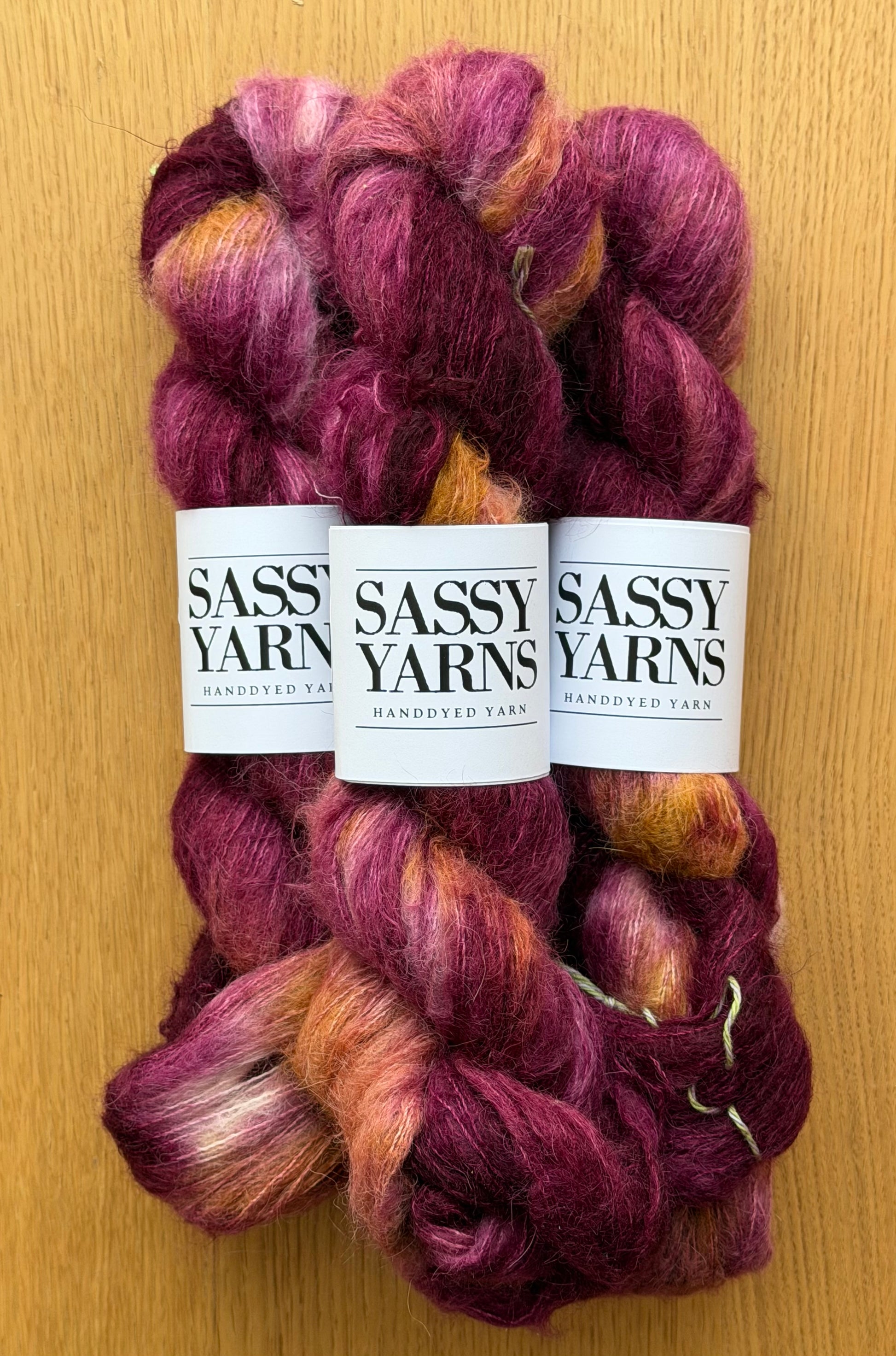 Håndfarvet garn er farvet i små partier og billedet er repræsentative for farvning. Dog er det ikke nødvendigvis det fed du modtager. Ved projekter hvor flere fed er involveret, anbefales det at skifte mellem forskellige fed for at undgå at farver ”grupperer sig”.