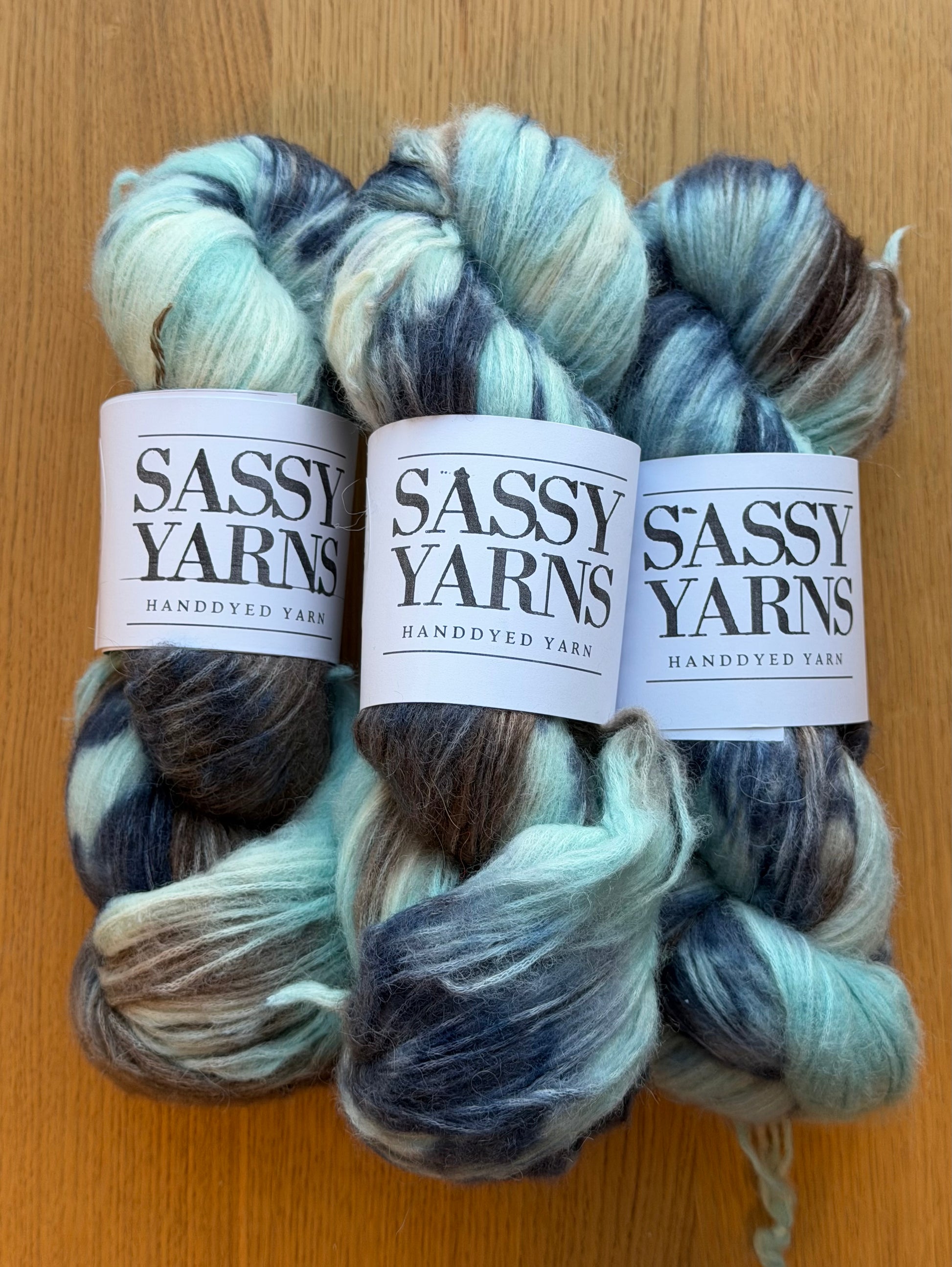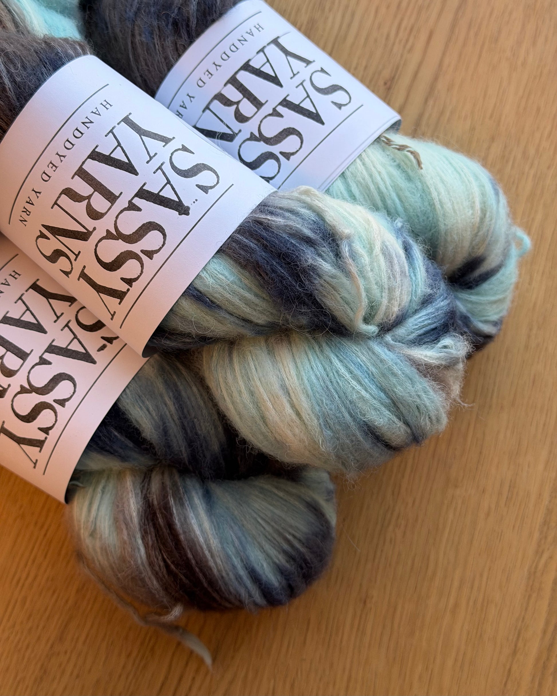 Håndfarvet garn er farvet i små partier og billedet er repræsentative for farvning. Dog er det ikke nødvendigvis det fed du modtager. Ved projekter hvor flere fed er involveret, anbefales det at skifte mellem forskellige fed for at undgå at farver ”grupperer sig”.
