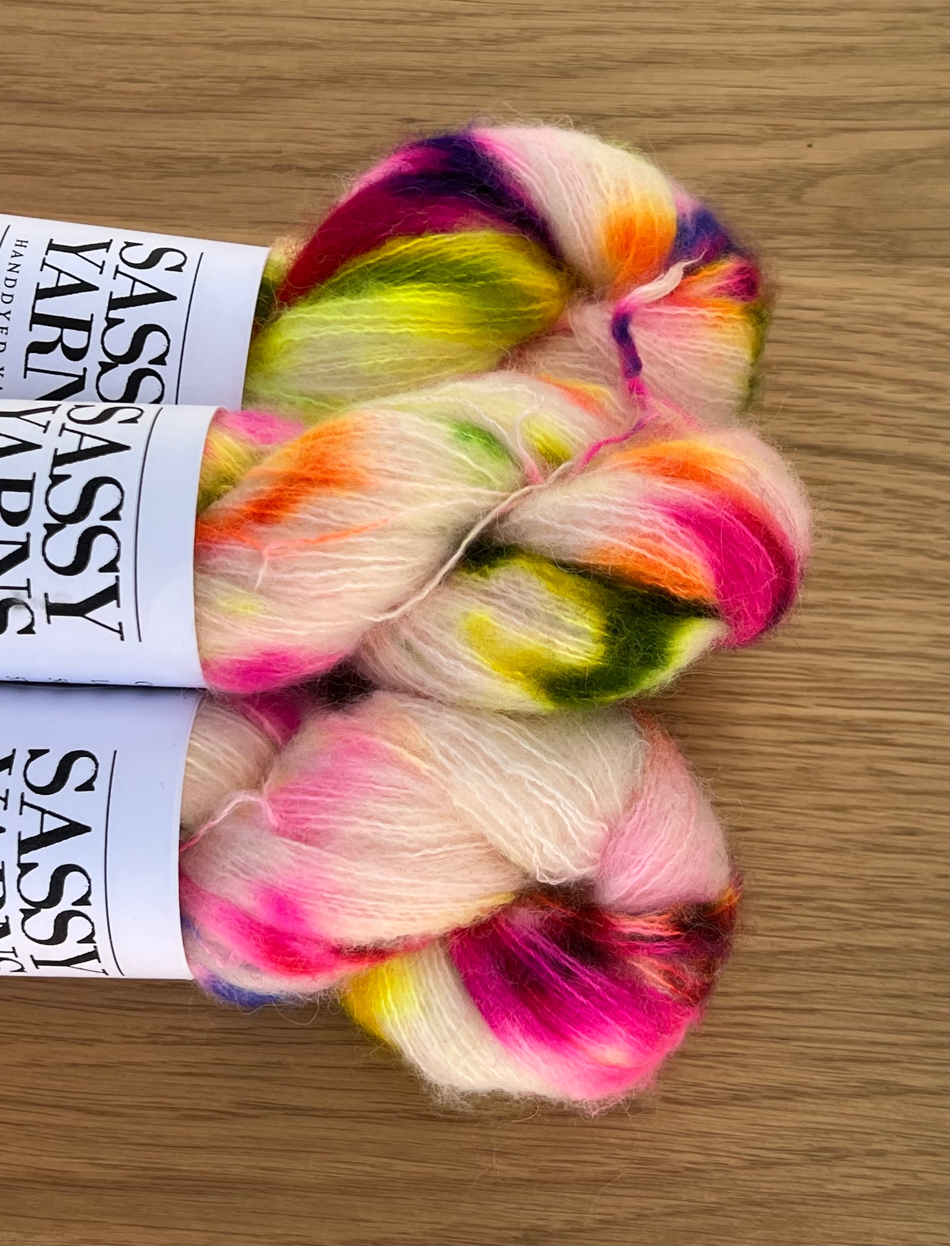 Det blødeste og lækreste lace garn der kan anvendes alene eller som følgetråd. Kradser på ingen måde og er en god erstatning for den traditionelle Kid silk Mohair
