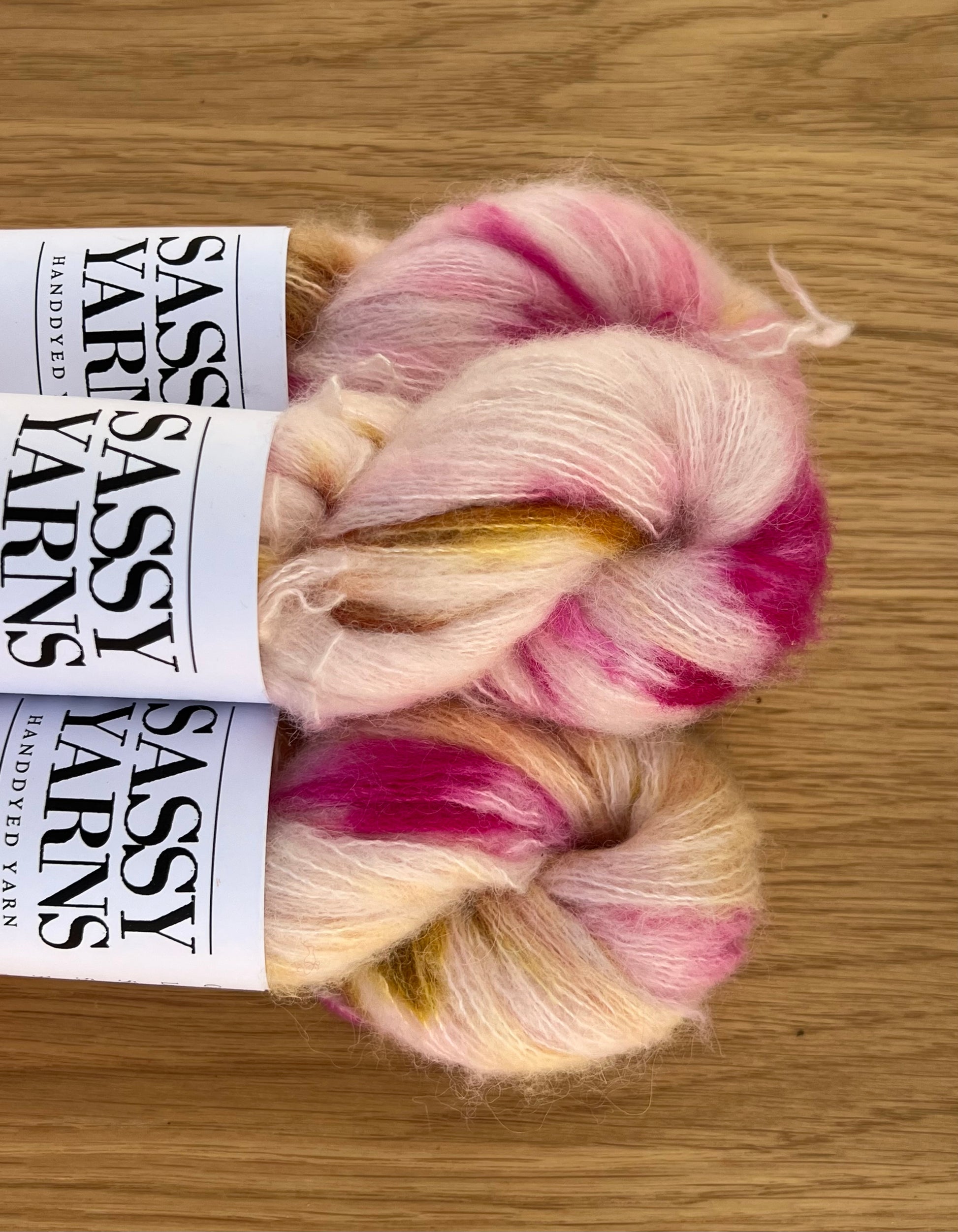 Det blødeste og lækreste lace garn der kan anvendes alene eller som følgetråd. Kradser på ingen måde og er en god erstatning for den traditionelle Kid silk Mohair
